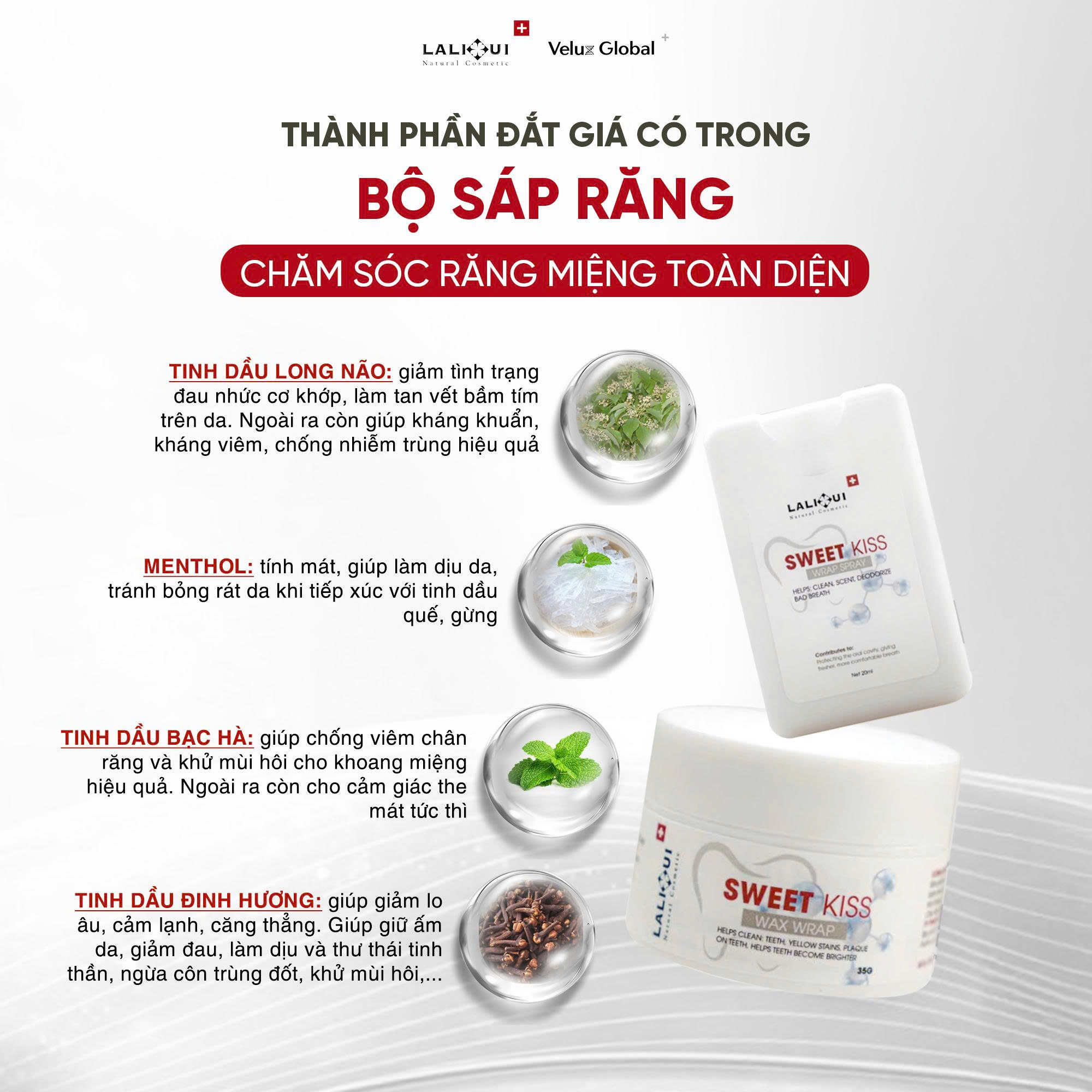 - Ức chế/ tiêu diệt các loài vi khuẩn gây bệnh răng miệng như sâu răng, viêm lợi và hôi miệng.